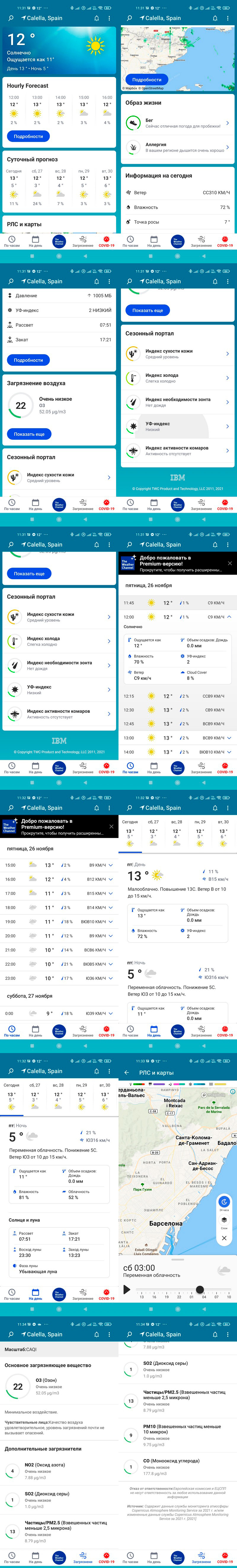 Вот тут с информативностью - все в порядке. Сразу видишь часовой прогноз и можешь его раскрыть, суточный прогноз, РЛС и карты, где можно ползунком смотреть ситуацию на ближайшие часы, информация об аллергенах, ветре, влажности, давления, УФ-индексе, рассвете и закате, загрязнении воздуха и многое другое.