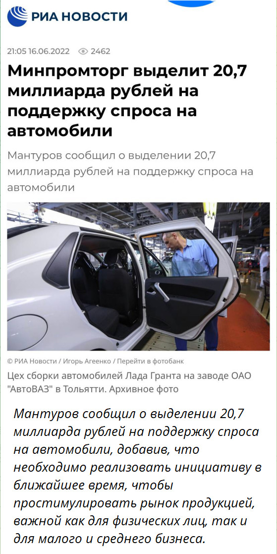 А кумпешка-то у них ещё варит. Ясный пень, любителей приобретать эти вёдра с болтами без подушек безопасности, электроподъёмников, ABS и так далее - найдется очень немного. Значит, надо вбухать 21 миллиард на поддержку спроса. Продажные блогеры пускай строчат посты о том, почему надо покупать эти убогие "Лады", певицы и певцы ртом пусть песни о ней слагают. Хорошая мысль, в общем.