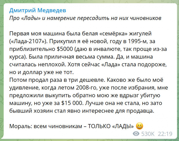 Дмитрий вспомнил про свой президентский срок. Интересное наблюдение. Напомнил так сказать. "Я вообще-то президентом был".