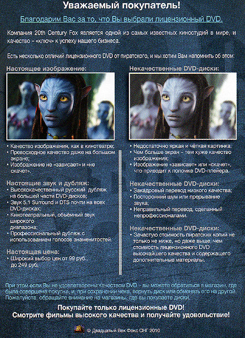 Спасибо тебе, Двадцатый Век Фокс СНГ, что разъяснил - дороже 249 рублей за диск не отдавать, иначе пиратка будет.