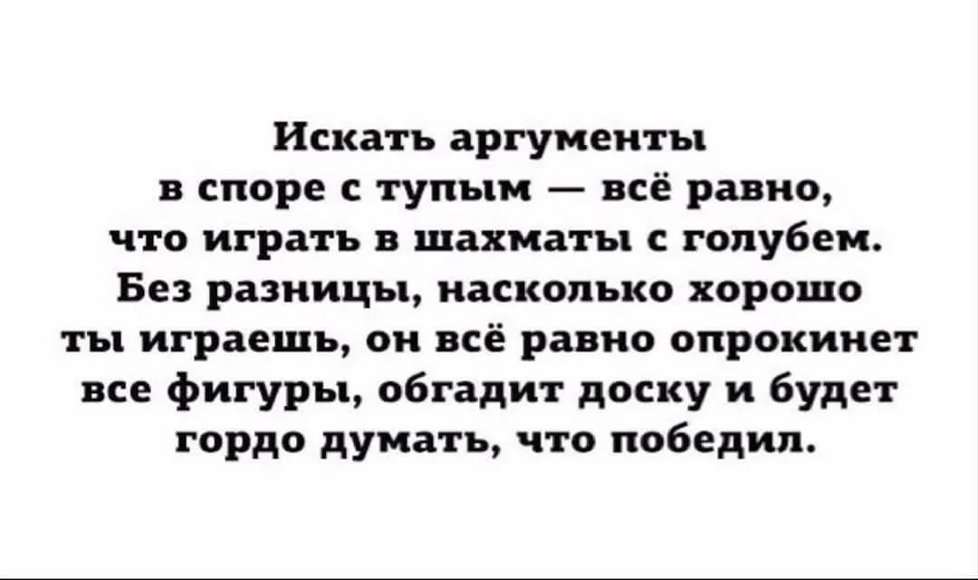 „Никогда не спорьте с идиотами. Вы опуститесь до их уровня, где они вас задавят своим опытом.“
