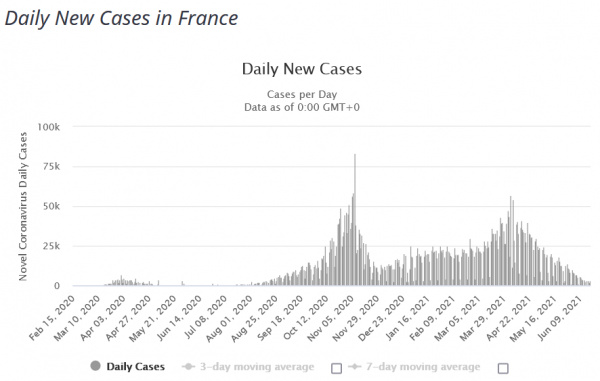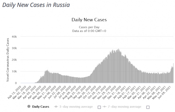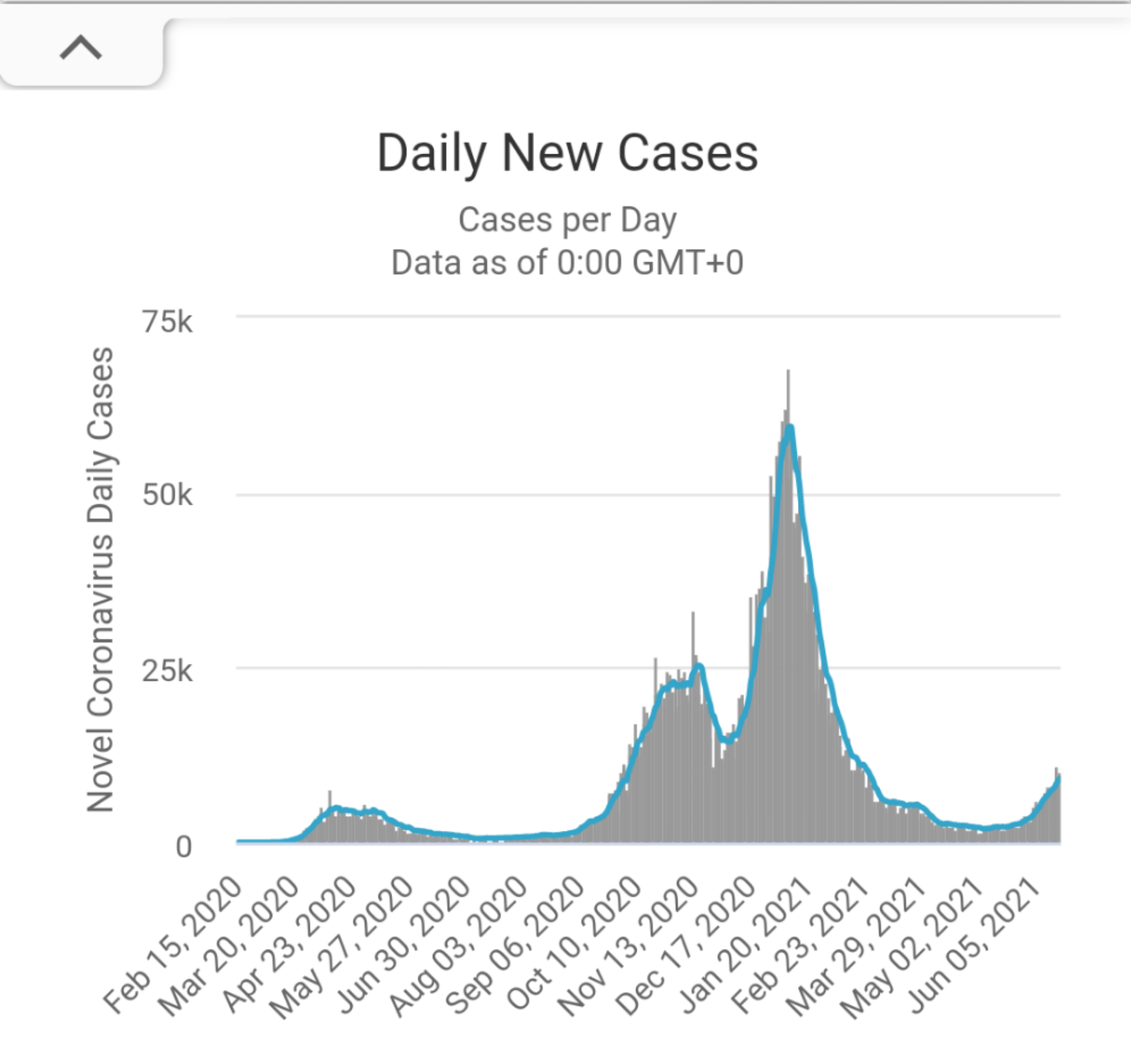Вообще, если взять условную страну с низким уровнем вакцинации (или даже вообще без вакцинации), то, разумеется, это не будет означать, что ковид устроит там полную аннигиляцию населения со штабелями трупов на улице (даже если власти этой страны не будут вводить какие либо ограничения). В такой условной стране ковид будет идти волнами, волна-спад, волна-спад. Естественно, что есть ещё много факторов, которые будут влиять на силу этих волн и их периодичность, но, в общем, картина будет такой. И так и будет продолжаться пока в такой стране не начнётся массовая вакцинация (ну или это какая то страна-самоубийца, типа