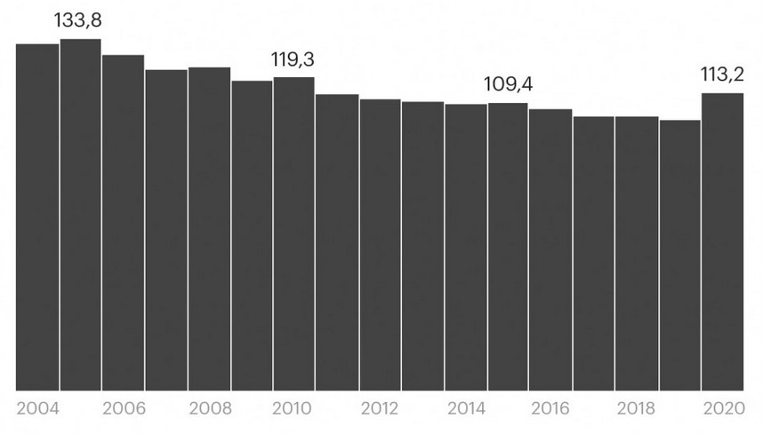 Как пишут демографы, смертность снижалась все предыдущее десятилетие, перед коронавирусом. Видимо потому, что много народу умерло в 2010-2011 году. Такой вот жестокий естественный отбор.