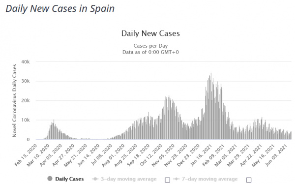 Как уже правильно написали выше, повышение случаев заболевания не связано с вакцинацией, а связано с приходом дельта варианта. Скорее всего, в Испании скоро тоже будет повышение случаев через пару недель, оно уже есть в Португалии (из Лиссабона на этих выходных никого не выпускают, чтобы не разносили дельту, но, думаю, это сработает лишь ненадолго, если вообще сработает). Если к тому моменту в Испании уже будет хороший уровень вакцинации, то есть шанс, что количество госпитализаций и смертей вырастет незначительно или вообще не вырастет.