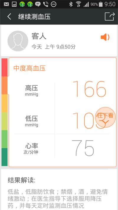 А вот и результат. Который выглядел достаточно недостоверно: у меня давление бывает слегка повышенным, но не настолько же.