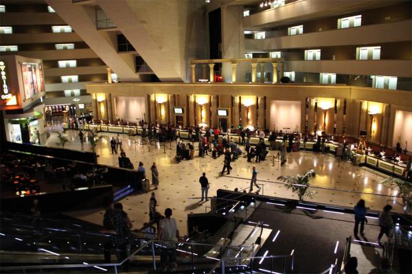 В Лас-Вегасе почти не бывает часов затишья. Спустился сегодня вниз в пять утра (мне скоро вылетать в NY, так что встал пораньше) - народ въезжает и съезжает, шляются толпы пьяных людей, которые еще не ложились, шляются толпы пьяных людей, которые уже ненадолго встали, в казино не протолкнуться - в общем, жизнь идет.