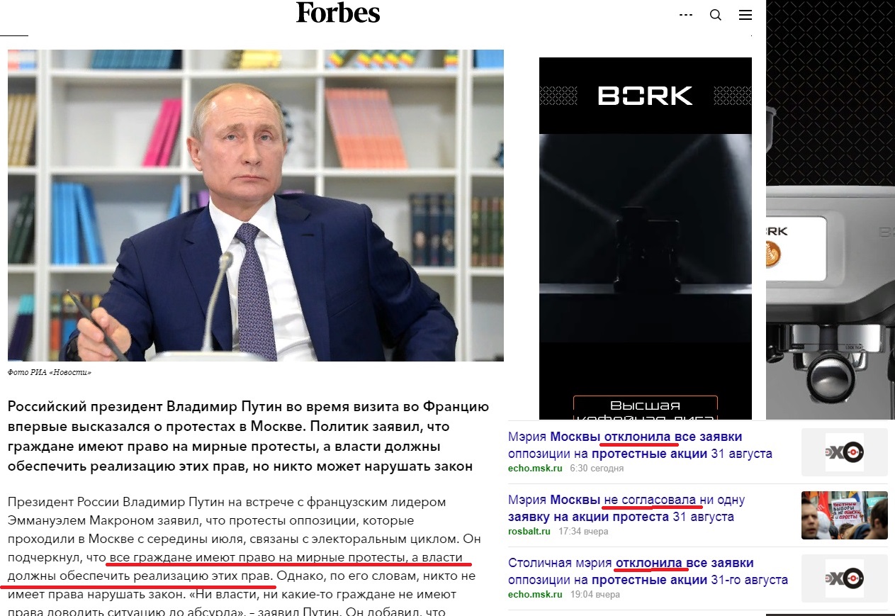 "Граждане Российской Федерации, лояльные режиму и лично Владимиру Владимировичу, имеют право собираться мирно без оружия, проводить собрания, митинги и демонстрации, шествия и пикетирование."