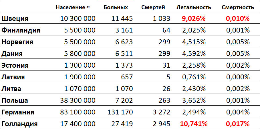В Швеции всё очень странно с официальной статистикой: выздоровевших в 3 раза меньше, чем умерших, а так быть не может.