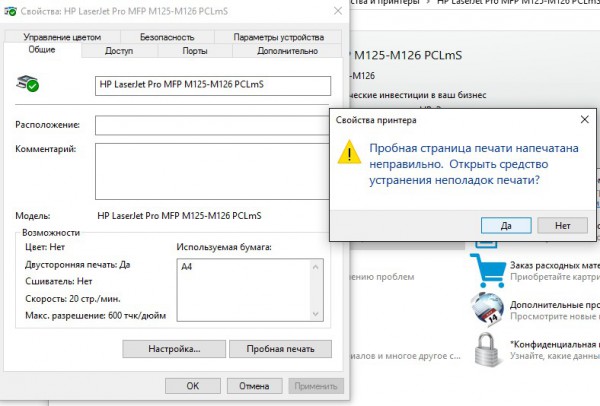 Первая печать тестовой страницы проходит нормально, но при этом выдается ошибка. (Я три раза переустанавливал.)