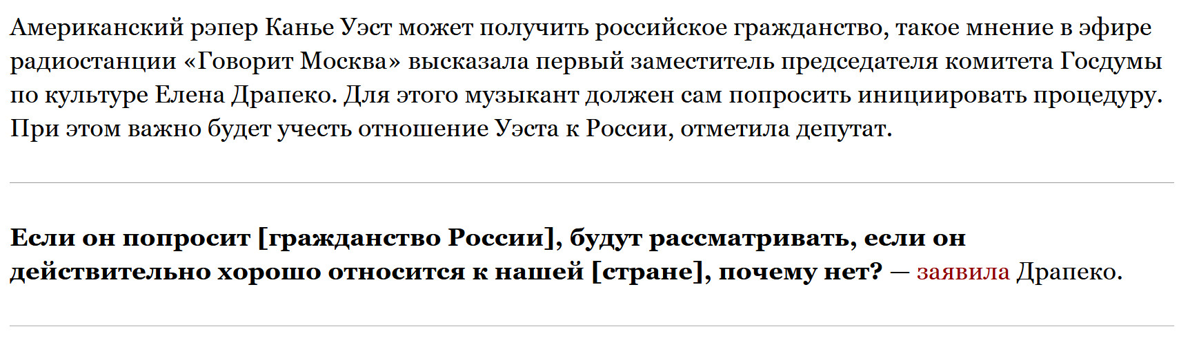 Вчерашний день прошел под эгидой главной новости дня - в Москву зачем-то приперся американский рэпер Канье Уэст, о чем сначала сообщила продюсер Рудковская, а потом появились и видеоподтверждения.