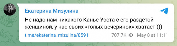 На российском ТВ добрая половина фильмов - Голливуд (прошлых лет, понятно). А королева безопасного интернета Мизулина пишет про Канье в Телеграме.