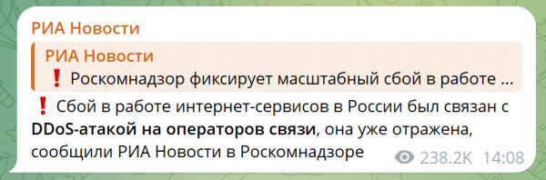 В Роскомговне, со свойственной этому ведомству феерической тупостью, объяснили сбои "DDoS-атаками на всех провайдеров".