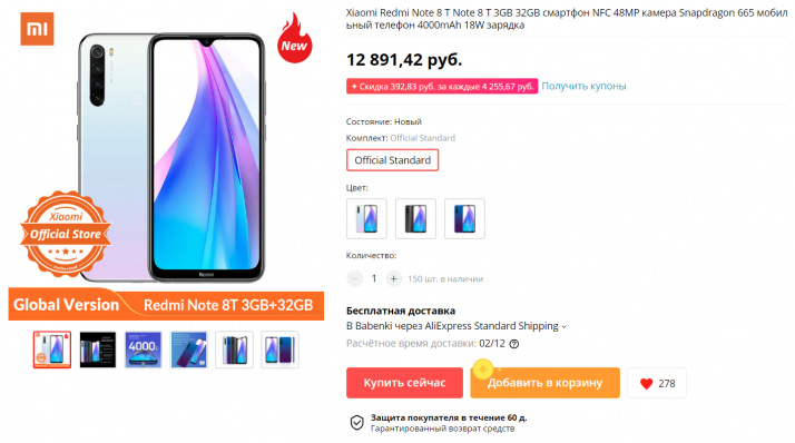 Вообще за свои 13 тысяч рублей смартфон выглядит очень интересно, я его закажу поизучать. Тем более что он на Ali уже появился. Смартфон буквально первый день в продаже, скидок на 11.11 на него не дают. И там количество ограничено, так что я пошел заказывать. Посмотрим, что за аппарат. Redmi Note 8 Pro очень понравился, но он в два раза дороже.