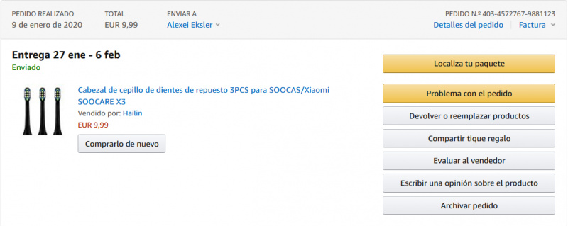 Надо было заказать головки для моей зубной щетки Xiaomi Soocare X3 (их полагается менять не реже раза в три месяца). А я все долго прособирался, уже пора было менять, решил заказать на Амазоне, чтобы не ждать долго с Aliexpress. Нашел, заказал. Правда, написали, что приедет не очень быстро. Ну ладно, подождем.