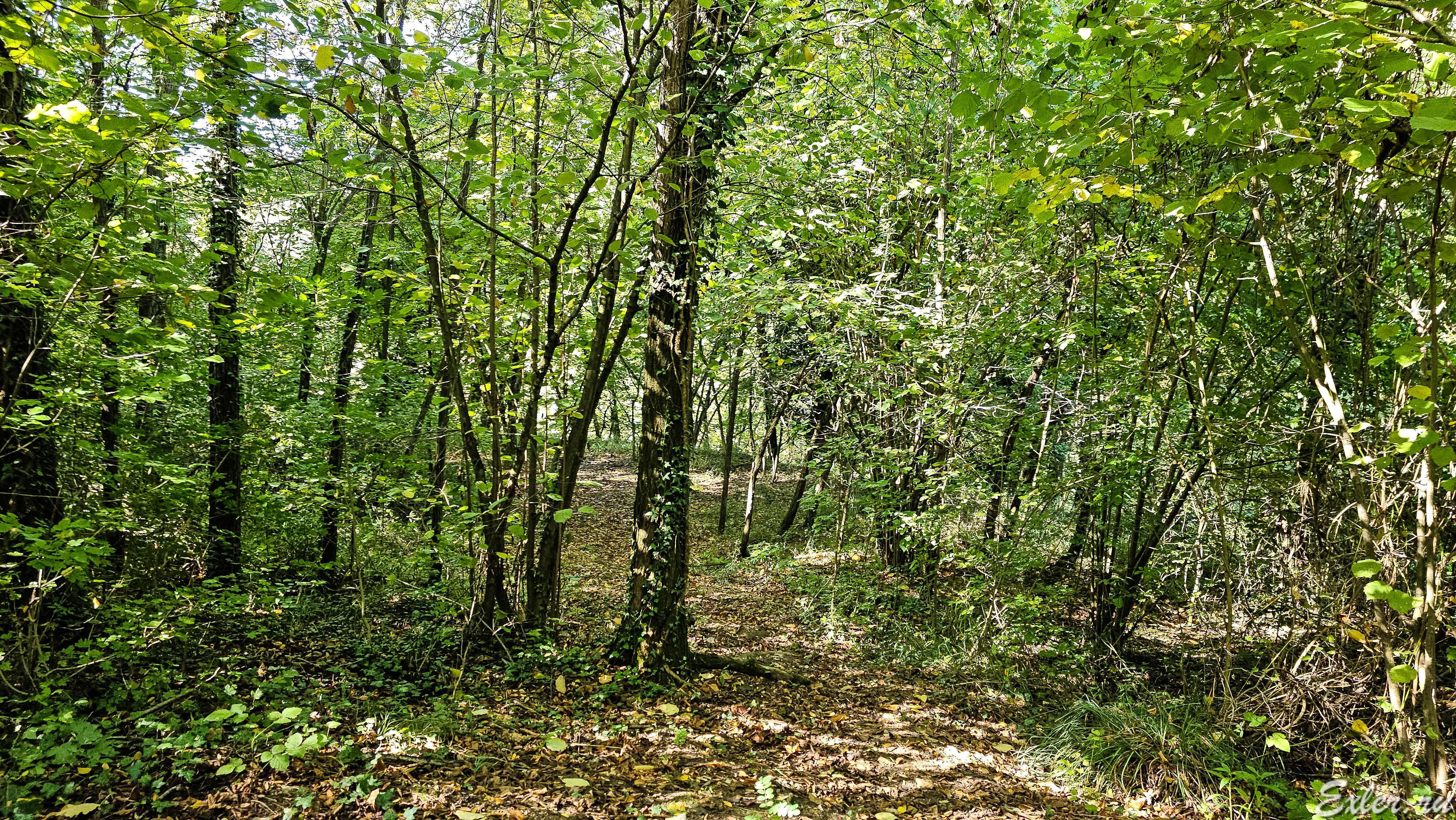 А это мы идем обратно к подъему на холм по зоне, разграничивающей лес и орешник.