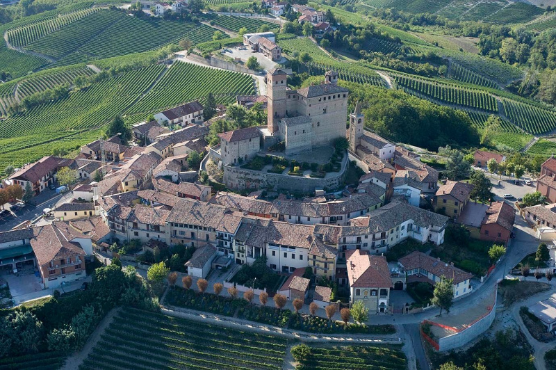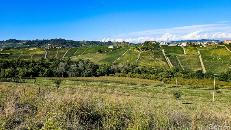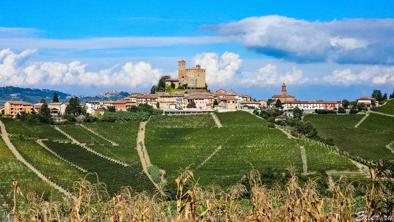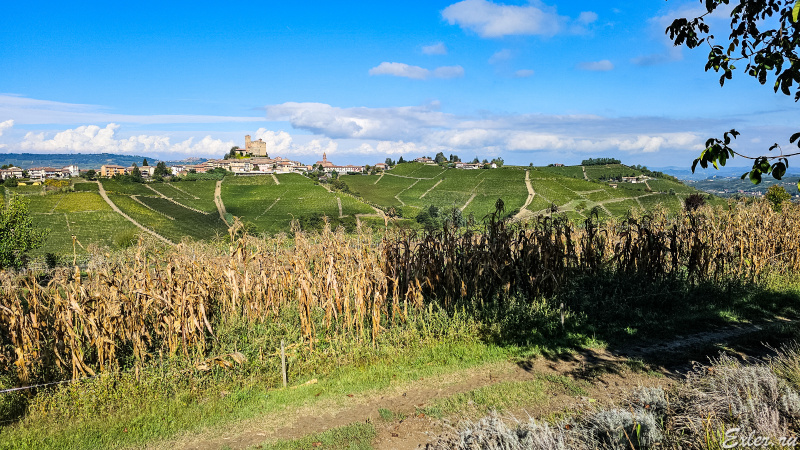 Вот вид на замок Castello di Serralunga d'Alba, стоящий на соседнем холме.