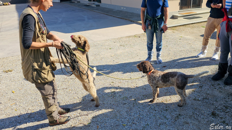 Я писал в статье о трюфельной охоте о том, что на трюфели охотятся только с собаками (вопреки легендам, свиней для поиска трюфелей не используют, потому что свинья, найдя трюфель, его немедленно сжирает), причем на 99% - собак строго определенной породы, а именно - лаготто-романьоло (озерная собака из Романьи).