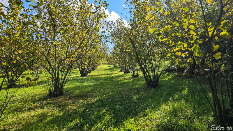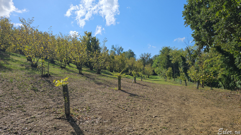 Вышли из леса к посадкам орешника - там тоже растут трюфели. Кстати, черный трюфель можно разводить искусственно, и его как раз и разводят в посадках орешника. А белый трюфель разводить не получится, его можно добывать только в его естественной среде произрастания.