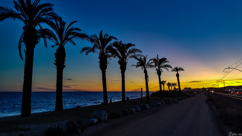 Я нынче свою ежедневную велосипедную тридцаточку (ну, скажем честно, она обычно 25-30 км) проезжаю вечером, раньше просто не получается по работе. И часто возвращаюсь уже на закате или после заката. Сейчас солнце садится еще в холмах, месяца через два-три будет садиться прямо в море - будет красиво. А пока - как-то вот так.