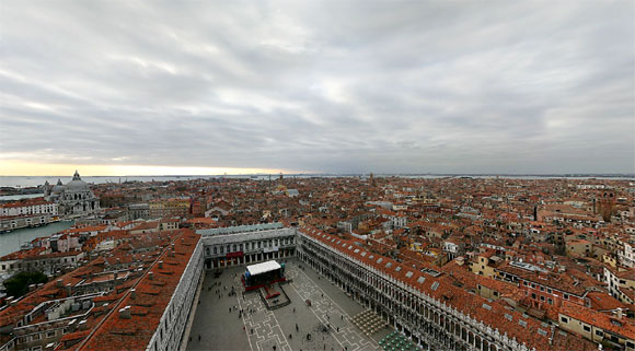 Фотограф Gilles Vidal специальной аппаратурой делает круговые панорамные фотографии Венеции и выкладывает их здесь. Выглядит очень эффектно. Причем это не просто плоские панорамы, а изображения, которые можно крутить на 360 градусов и по горизонтали, и по вертикали (нужен QuickTime).