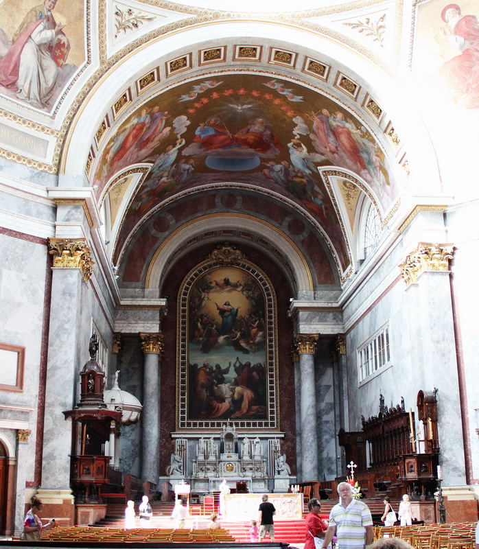 Крупнейший храм Венгрии - базилика святого Иштвана в Будапеште. Высота его купола - 91 метр, второе по величине купольное здание в католическом мире. Высота эстергомской базилики - 76 метров (цифры - по памяти). Внутреннее пространство, а соот. и вместимость также больше у будапештской базилики.