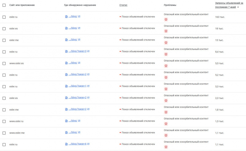 Если глянуть базу lumendatabase.org, куда Гугл потом эти жалобы пересылает, то там огромное количество страниц вашего сайта обозначены, как имеющие Defamation Complaint или Copyright Complaint. Там же видно, кто "пожаловался".