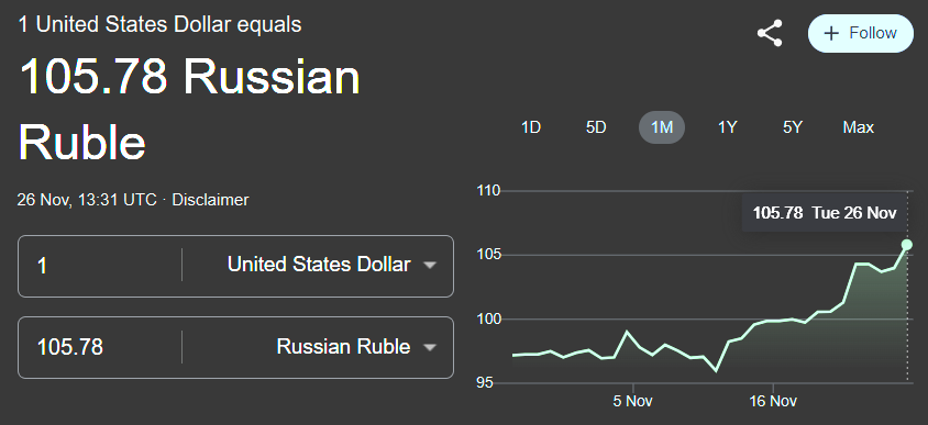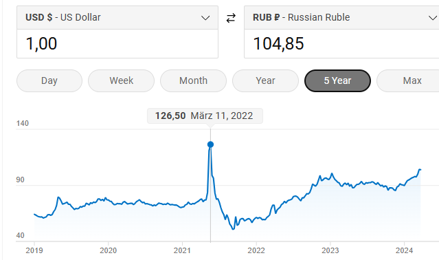 Стоит отметить что в 22м году курс доходил до 120+-. А у менял и до 160-170