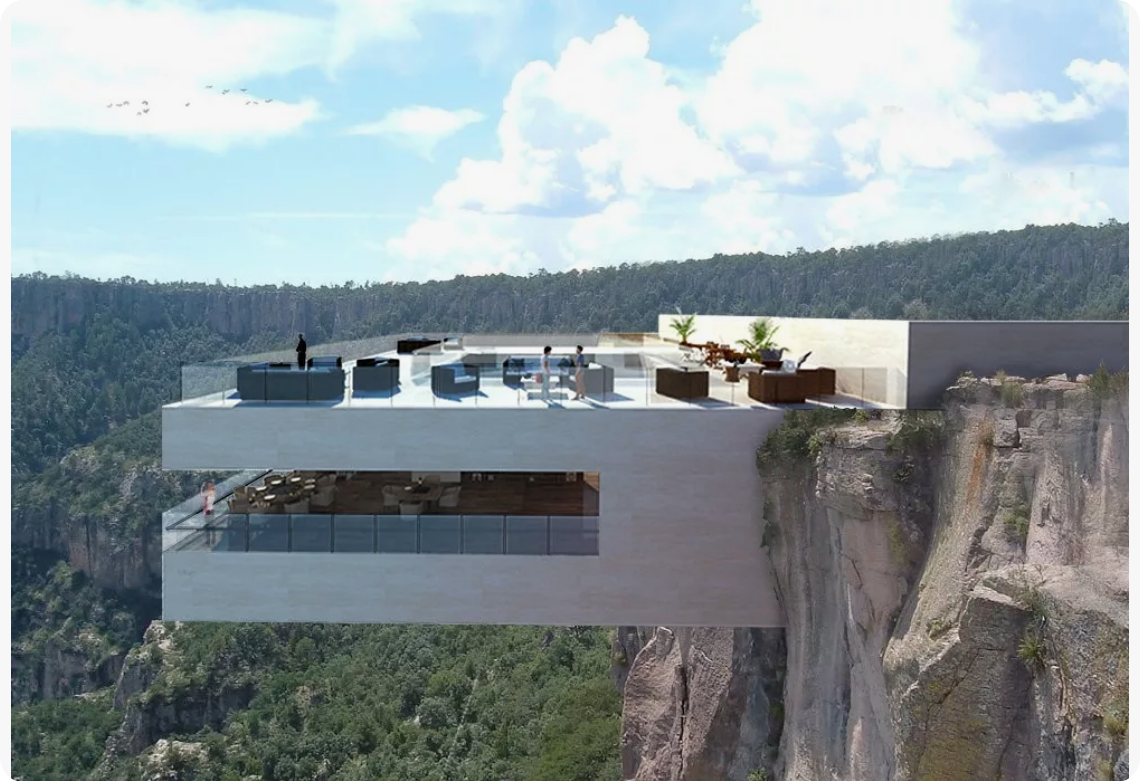 Архитектором выступил Жан-Пьер Лотт из парижского бюро Atelier Jean-Pierre Lott, а строительством занималась компания J.B. Pastor & Fils. Идея возникла на основе существующей скалы, которую решили сохранить и интегрировать в дизайн, создав органические формы с помощью архитектурного бетона, имитирующего натуральную породу.