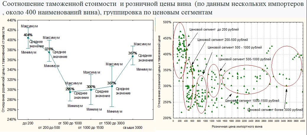То есть оптимальный сегмент - это вина примерно от 500 до 1500 рублей. Как раз именно в этом сегменте я вина в России и покупаю. Причем я к этому пришел тоже именно по соотношению цена-качество, а не просто цена.