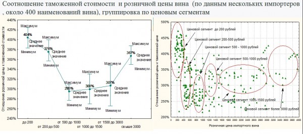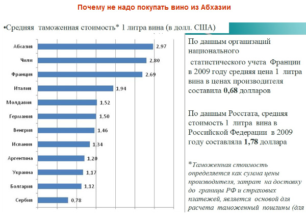 Особенно полезна табличка средней таможенной стоимости. (Вино из "Абхазии" не нужно покупать не только из-за этого показателя, конечно.)