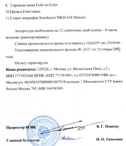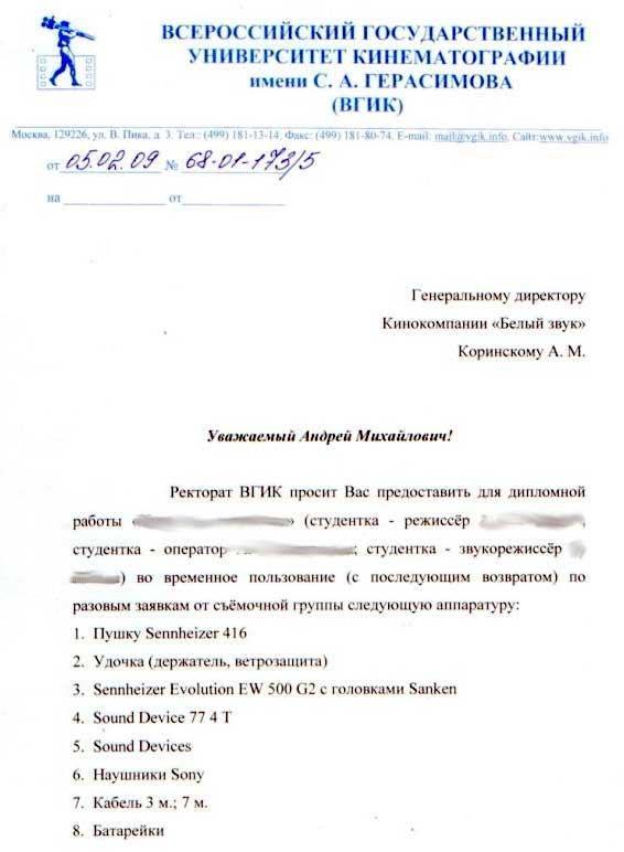"Прошу предоставить во временное пользование студентку-режиссера, студентку-оператора и студентку-звукорежиссера" 😃 С возвратом, естессно 😃