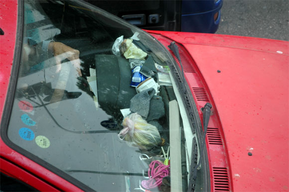 В штатах так заваливают задние пассажирские сидения. Ну и не только задние. Причем, это заразно. Я к своей машине там относился весьма щепетильно - мыл, пылесосил и т.д. К знакомому, который прожил там всего год, было страшно садиться даже спереди, приходилось разгребать завалы. Местные так же. На вопрос, а, собственно, какого хрена делать помойку из машины - отвечали, что все равно вечно одни ездят, оно не мешает. А выбрасывать каждый раз каждую упаковку и бумажку - в лом.