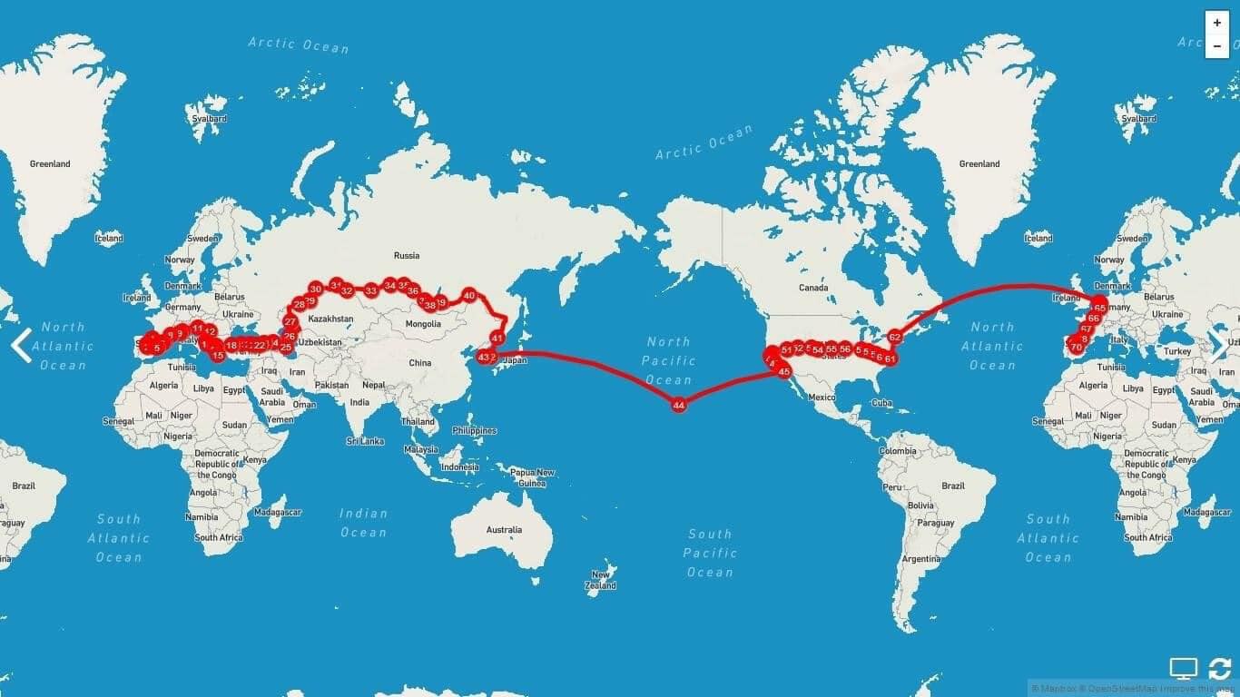 За 80 дней он проехал три континента, 18 стран, а общий путь составил 27113 километров (если же считать еще и двухгодичную подготовку, то всего он проехал 74000 километров).