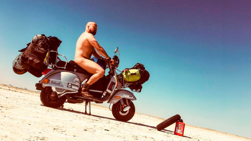 В среднем он проезжал 399 километров в день, самый длинный этап составил 690 километров, и это на Vespa.