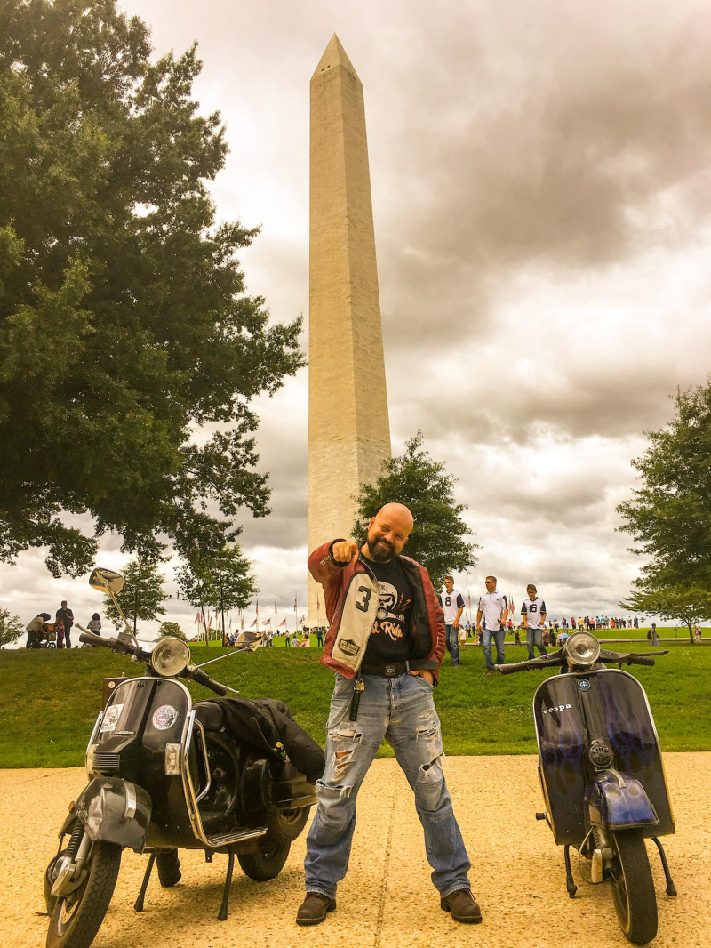 В поездке он использовал три скутера Vespa: один он купил в Мадриде, второй в Нидерландах, а третий у него был в США, на котором готовился к поездке.
