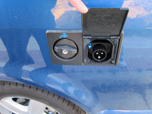 Справа от газового баллона - емкость для воды. Вода заливается снаружи через специальную горловину. Справа от горловины - розетка 220 В.