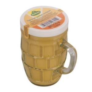 Когда в Челябинске не стало аутентичной дижонской, я перепробовал разные российские "по-дижонски" — херня! А потом в одном месте увидел Kuhne средне-острую (тоже почти нигде нет). То, что надо! Ничем не уступает дижонской. Одно отличие: немцы используют шафрановый краситель, чего французы не делают. Поэтому открытая банка напоминает банку ярко-жёлтой краски. Вот она: