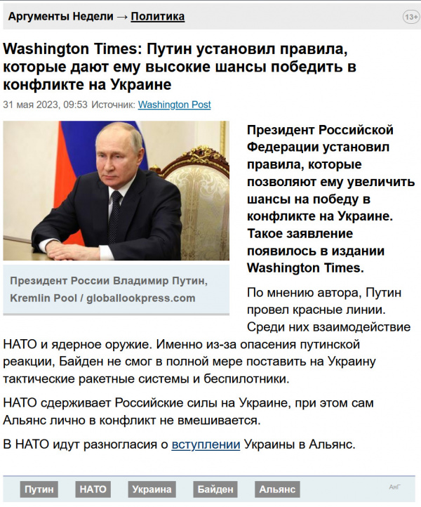 В итоге я вообще ничего похожего в The Washington Post не нашел. Судя по всему, это просто бредни "Аргументов", а почему они ссылаются на издание, где нет ничего похожего, - ну так сойдет же для недорогих россиян, проканает. Путин, понимаете ли, правила установил.