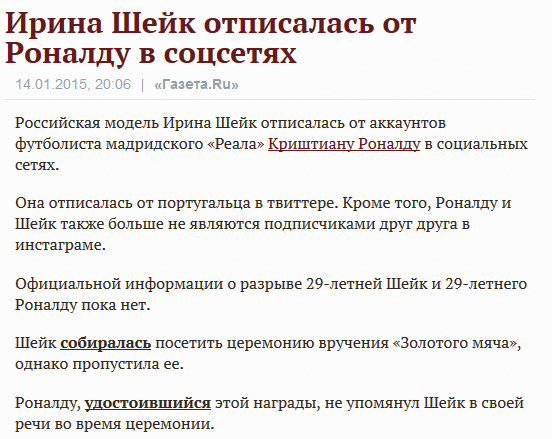 А кто такая Ирина Шейк? И почему она была подписана на Роналду? Извините, я только что с пальмы.