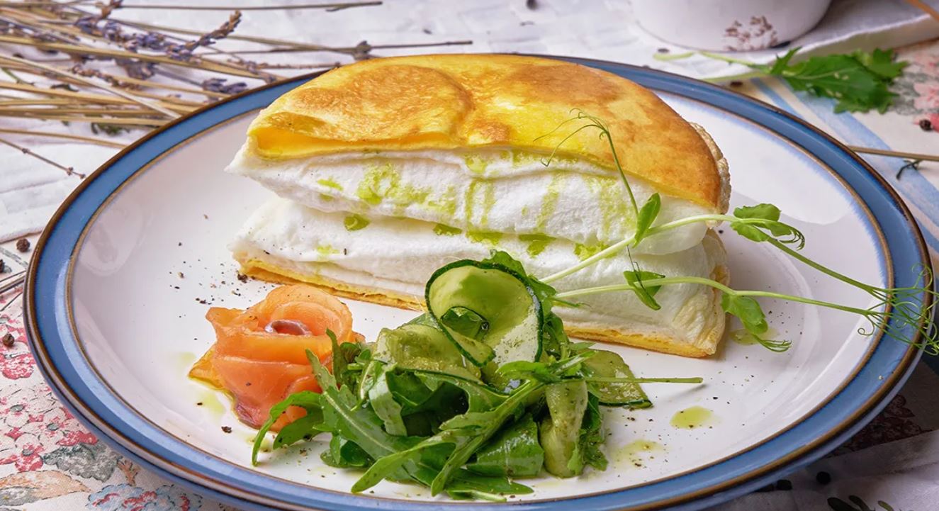 А еще он показал вариант с отделением желтка от белков, желтки готовятся как обычный омлет, белки взбиваются в плотную массу, потом ее заворачивают в омлет, нарезаются и получается омлет-роллы. Можно украсить темной подливкой и икрой. Тут я понял что голоден и пошел на кухню 😄