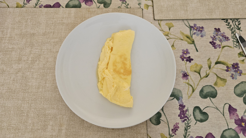 Кому-то омлет нравится полностью прожареный без всяких жидкостей внутри, но он одновременно и более сухой и более упругий.