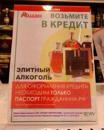 netmantix: Покупать алкоголь в России с 23:00 до 08:00 запрещено Федеральным законом. А брать в кредит никто не запрещал.