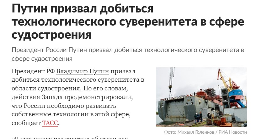 Другой вопрос что никто не мешал России интегрироваться в международное разделение труда. Но с приходом Путина этот путь тоже оказался закрыт. Если даже из совместного проекта с китайцами Россия то ли сама ушла - то ли ее выкинули.