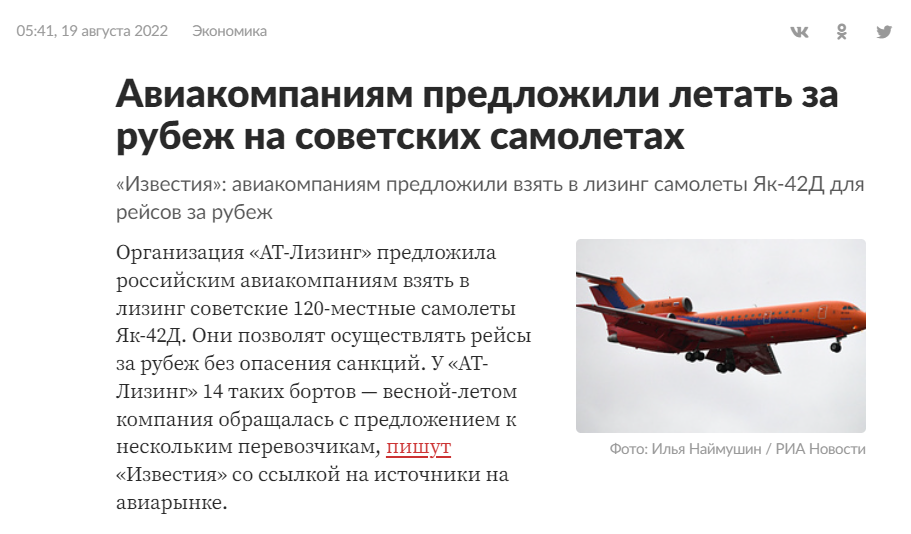 А по теме - интересно вспомнить, почему РФ, имея свою могучую авиапромышленность, стала закупать всякие боинги с аэробусами. Ну а конкретно по як-42 - насколько я помню, его отличительной чертой было то, что он все время падал.