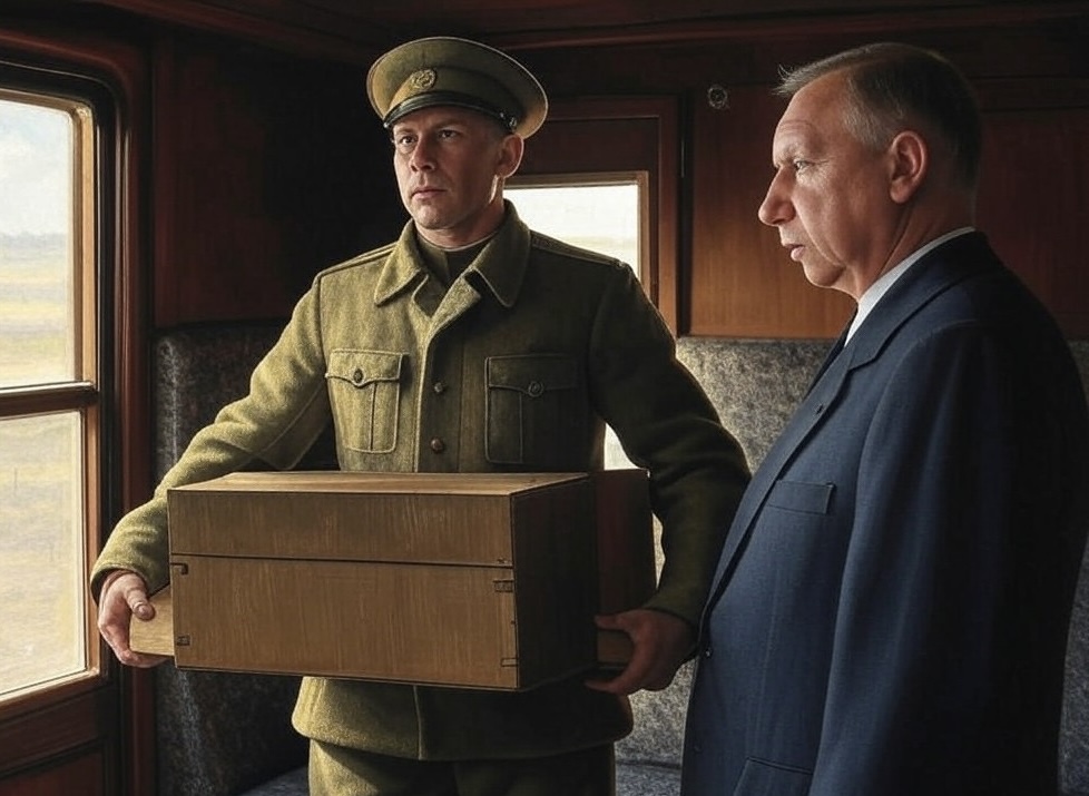 Начальник поезда отказывает и объясняет, что его могут уволить за нарушение инструкций. Тогда военный просит сотрудника РЖД помочь ему перенести коробку, но Шумейко отвечает, что не имеет права прикасаться к багажу пассажиров.