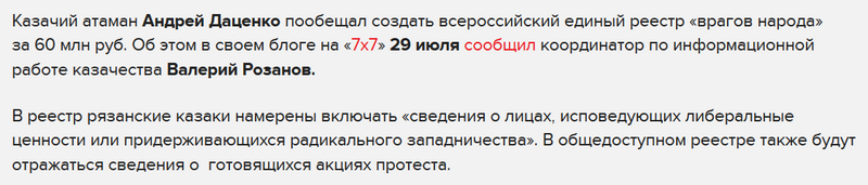 Я не понимаю, почему на такие важные вещи не объявляется тендер. Лично я всероссийский единый реестр "врагов народа" готов создать всего за 30 млн. руб. Так и запишите!