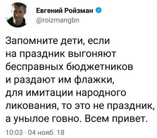 А вы как отмечаете этот "День народного единства"? С кем-нибудь единяетесь или выпиваете в одиночку?