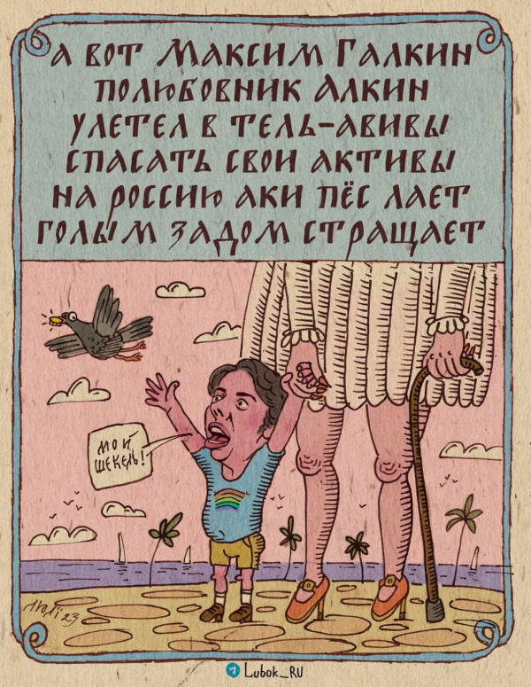 Ну и автор под псевдонимом Кот Лубочный выдал три плаката, посвященных иноагентам Галкину, Гребенщикову и Назарову.