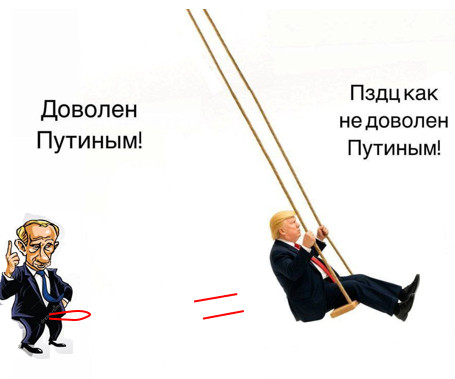 В результате Трамп на качелях, то он согласен с Путины, то он согласен с Зеленским в зависимости о того с кем он только что поговорил. Ситуацию пока спасают хотя бы те советники, что еще вокруг него остались - Марк Рубио например. И чем дальше эта комедия продолжается тем больше очевиден этот фарс для всех зрителей и наступит момент когда Трампа окончательно Путин макнет в лужу при всех публично под хохот зетников и улыбки Пекина. Это будет такая оплеуха "Великой Америке", что иранский кризис с захватом американских заложников потопивший Картера покажется просто детской игрой.