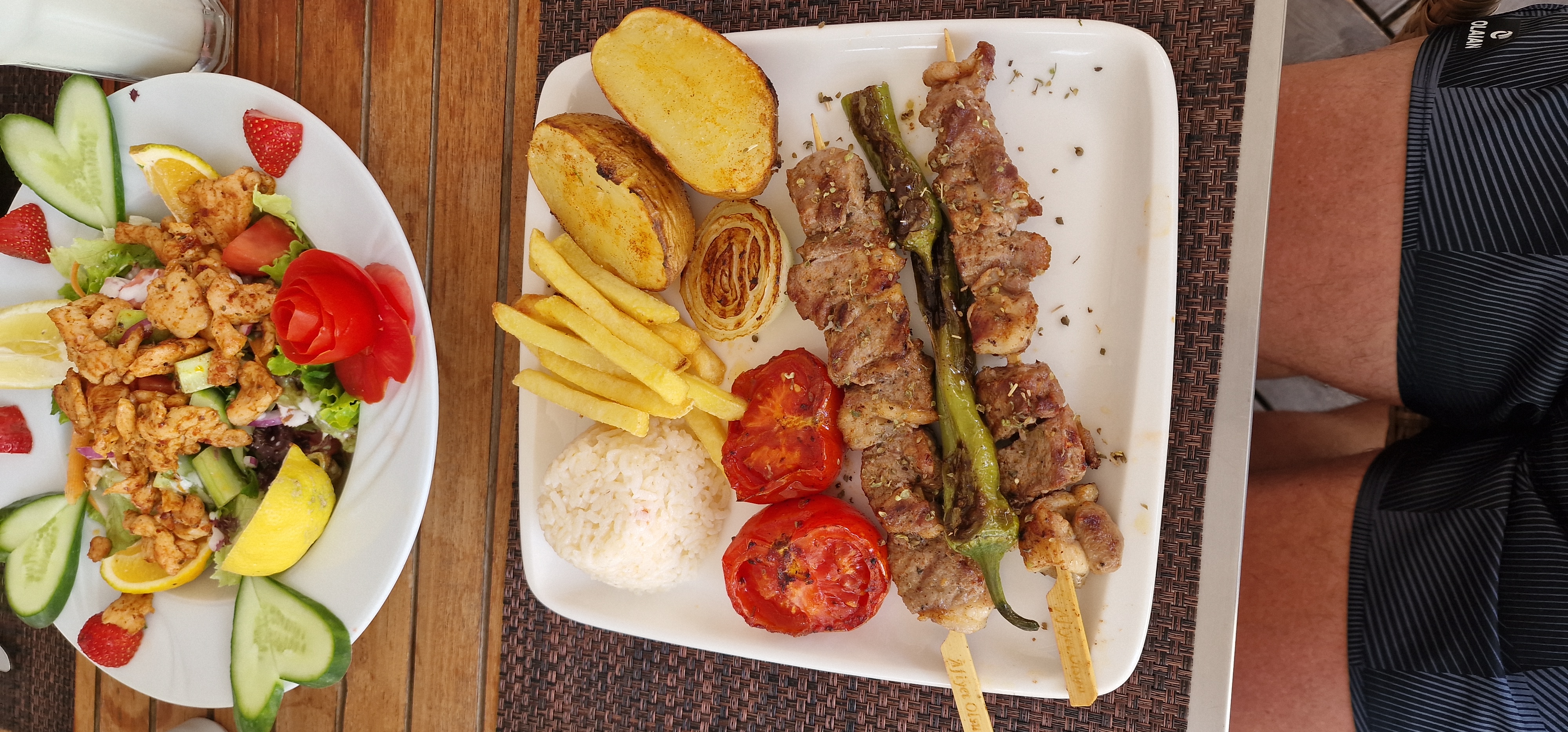 С мясом там прям даже трудно было выбрать, что вкуснее. На мой вкус самая бомба - это именно говяжьи ребрышки: они получились нежнейшие, а мясо очень непростое. Козлик был хорош, кебаб отличный. Но и шашлык при всей традиционности и простоте тоже пошел отлично.